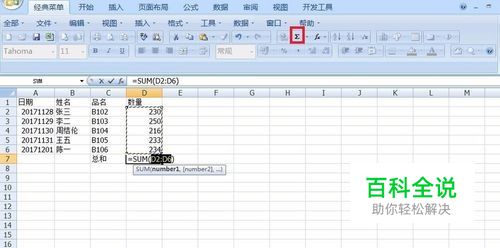 然后计算数量总和,点击“求和”图标,接着回车