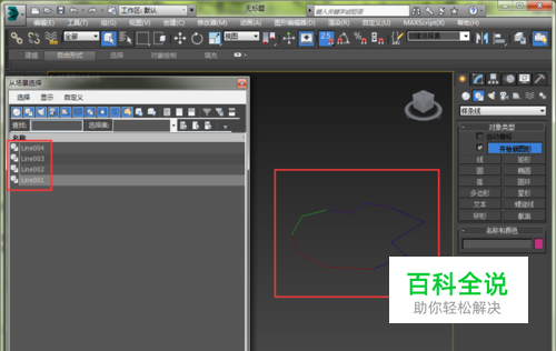 首先我们再3dmax视图区画上几条线。我这里有画4条线,虽然看上去他们是首尾连接的,但其实都是单独的线,分别是line1 line2 line3 line4