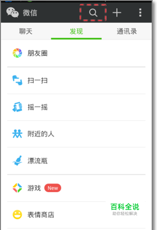 登陆微信,打开 主页面,在最上方有一个放大镜图标,点击它