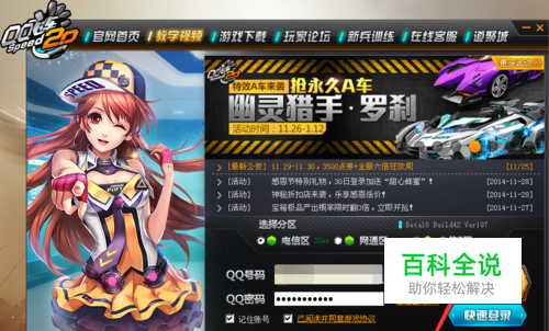 打开QQ飞车软件,在登录页面输入QQ账号及密码,输入无误后点击登录按钮,登录QQ飞车;