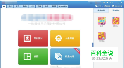 第一种方法为首先打开桌面上的美图秀秀软,进入到美图秀秀主界面。在美图秀秀主界面,点击【打开】,打开一张图片。