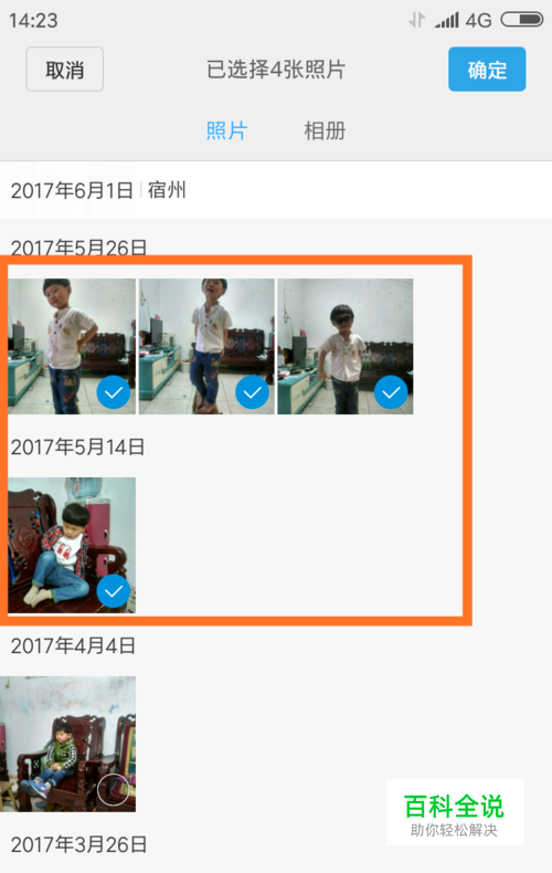 然后选择你想放在同一张图里的照片,最多可以选择四张照片,如图