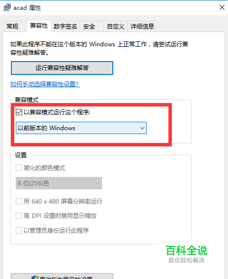 从云盘下载解压CAD2006,打开文件我们点击“acad”然后右键-属性-兼容性-把“以兼容模式运行这个程序”打勾,然会应用。