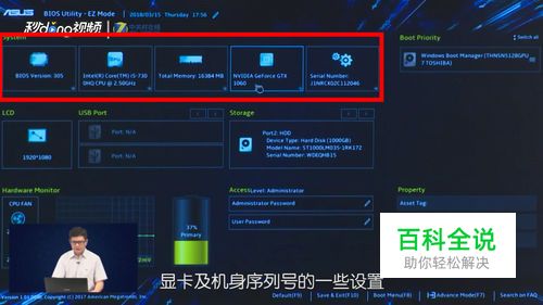 在BIOS界面上方,我们可以看到CPU、显卡及机身序号的一些设置。