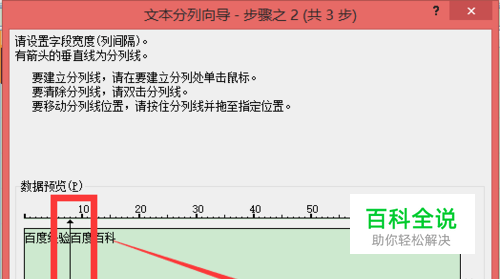 我们按住鼠标左键拖动分列线,把分列线拖动到我们想要拆分单元格的位置,然后点击“下一步”。