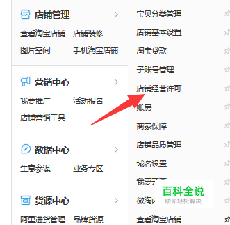 找到左边的店铺管理页面,店铺资质属于店铺管理类,找到这个主菜单栏下的子菜单栏店铺经营许可