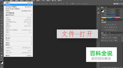 打开PS,点击文件,选择打开,打开一张背景图片。