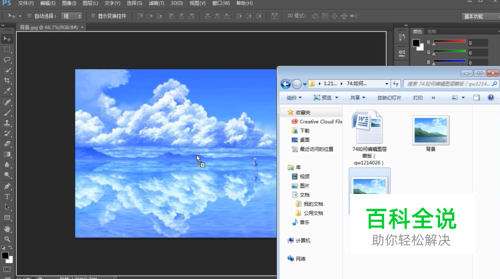 我们按住左键,将文件夹中的素材图片拖动到PS窗口中。