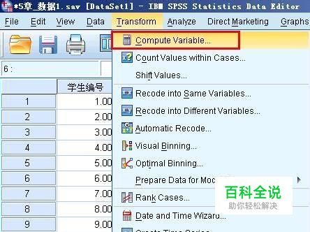 拿到数据以后,我们在菜单栏上执行:transform--compute variables