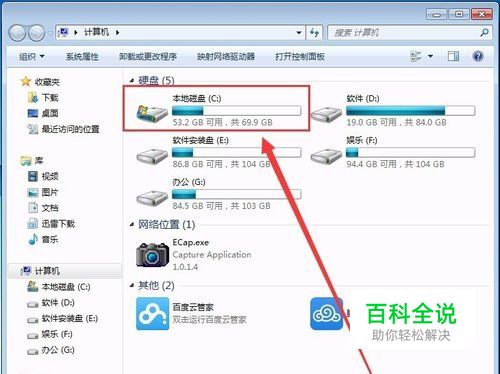 打开电脑桌面上的计算机图标之后,我们双击打开设置窗口里面的C盘 ,一般安装操作系统都是安装到C盘里的,所以直接找C盘即可 如图