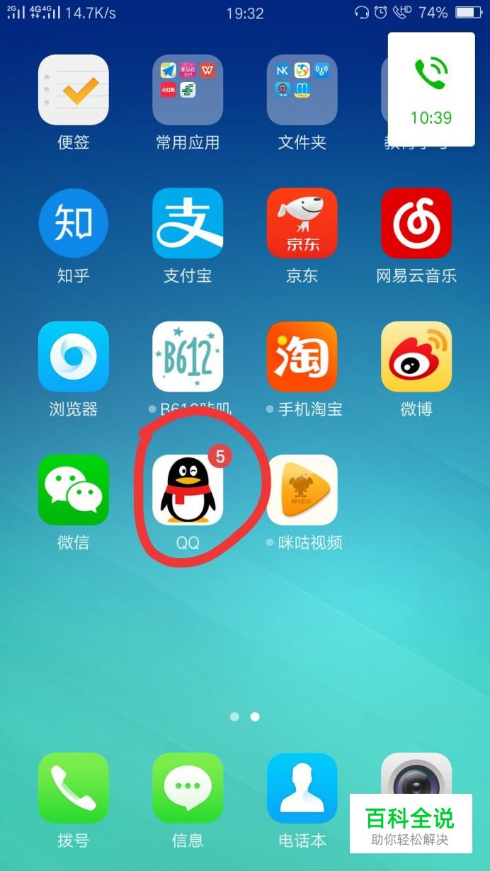 首先打开手机,找到QQ图标,将其点开。