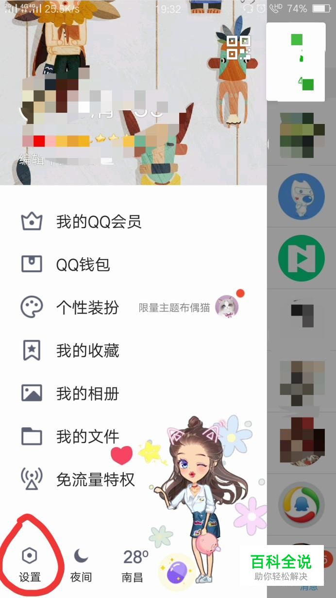 进入QQ后,向右滑动屏幕,找到“设置”,然后点开。