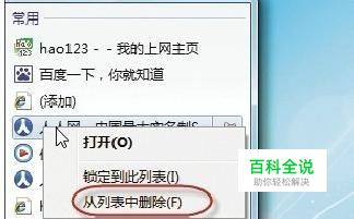 2、选择性删除法 这个方法是最简单的,相信每一个使用过Windows 7的朋友都会知道的方法,鼠标右键任务栏上的任一应用打开Jumplist菜单,然后再用鼠标右键点击其中的任何一项记录,弹出菜单中你可以看到允许“从列表中删除”一项,马上你就可以把这一项记录直接删除了。