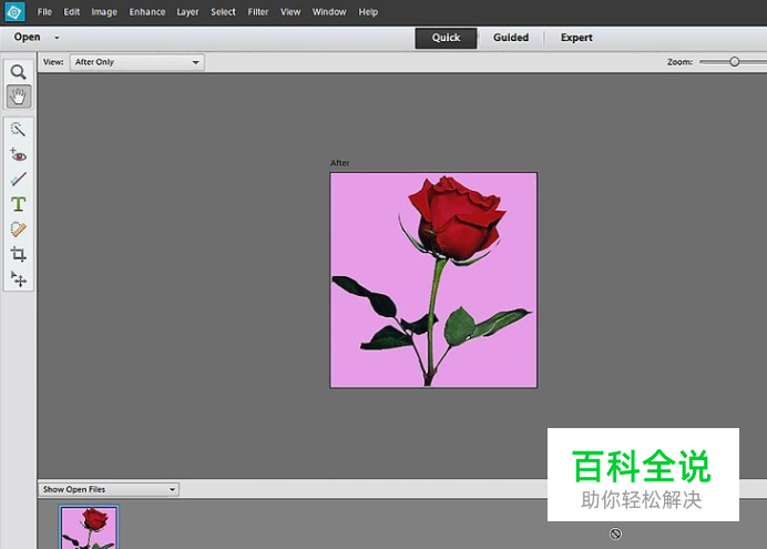 在Photoshop Elements中打开图像。如果背景是纯色或接近纯色,此方法效果最好。