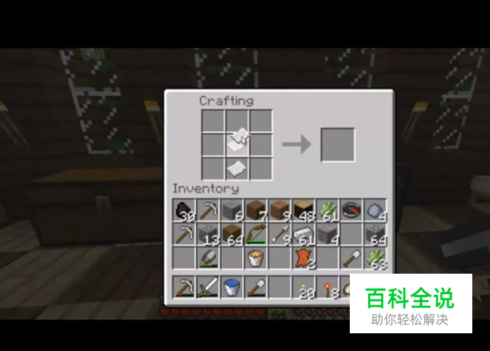 材料放在制造台中。可以随意地放,无论怎么放都可以做出书本。不过如果是Xbox 360 版本的,就将三张纸(无需羽毛)放在中间一列。