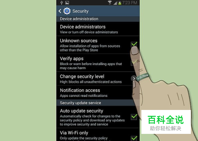 从其他来源下载app。要在Play商店外的地方下载app(应用程序),需要让手机允许从外部来源下载非市场程序。 点击手机上的菜单,进入设置,往下拉,看到安全设置,进入安全设置画面。往下拉,看到“未知源”这个框,打钩以后,你就可以直接安装APK文件了。 APK文件就是安卓系统的程序安装文件。想要加入一个程序,必须用它的APK安装文件来安装。 确保你是从可信任来源下载程序的。有很多Play商店以外的下载网站,提供Play商店中下不到的程序,很多情况下是免费的。这些网站可能提供的是发布的Beta试用版程序,也可能是在Play商店外购买使用的程序。 下载APK文件后,可以通过手机的下载软件打开它,点击APK文件,手机会问你是否安装它。