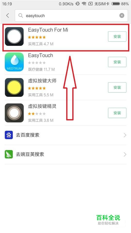 进入手机应用商店,搜索“easytouch”,看到如下所示,点击下载。