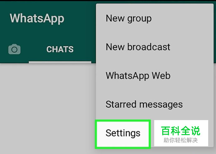点击 设置。它位于屏幕右下角。 如果打开WhatsApp程序就直接进入会话界面,先点击屏幕左上角的“返回”按钮。