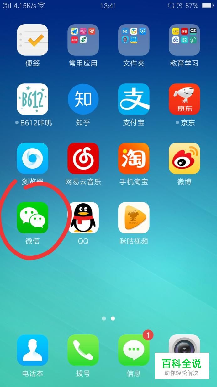 首先我们打开手机,找到微信的图标,将其点开。