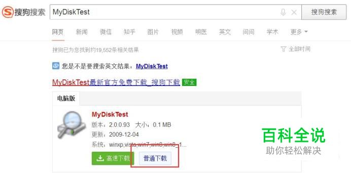 首先,使用搜索引擎搜索“MyDiskTest”关键字,在搜索结果页面中,点击下载该软件。