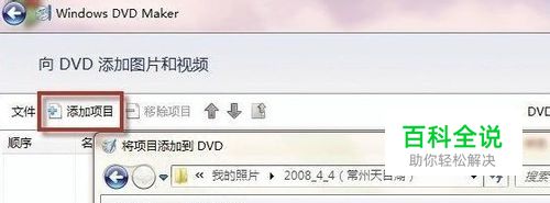 2、在显示的添加窗口里点击“添加项目”按钮,在弹出的窗口中可以来选择文件了,可以通过按住键盘上的“Ctrl”键来多重选择文件,选好后点击“添加”按钮。