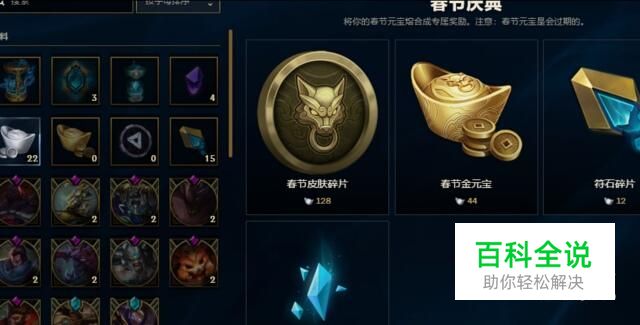 点击银元宝就可以查看银元宝可以兑换的奖励,其中包括精粹,符石碎片,金元宝,以及春节皮肤碎片。