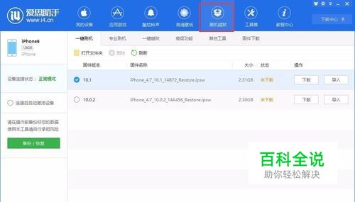 首先去官网下载安装PC端最新版爱思助手,用数据线把移动设备连接到电脑;点击上方“刷机越狱”进入到“一键刷机”界面,连接成功会自动匹配固件;