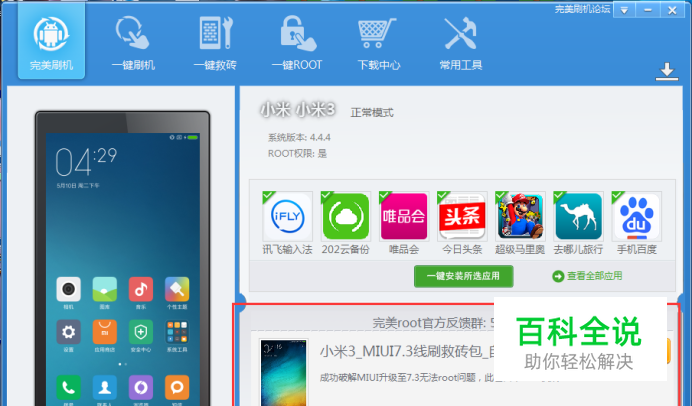 近期小米官方推送MIUI升级,升级后的MIUI7.3无法root,完美刷机研发中心经过不懈努力终于成功rootMIUI7.3,由于时间较短现在只 更新小米3移动版MIUI7.3强制root包,后续我们将继续更新小米其他机型强制root包,废话不多少,直接上教程!老司机准备发车,各位准备好学 生卡,老人卡,无卡乘客不能上车!