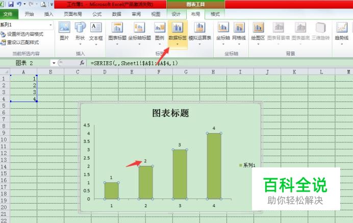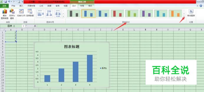 如果你对这个图形不是很满意,你可以通过“图表工具”选项卡中的“设计”中的图表布局中的“快速布局”调整标题,标签的位置。