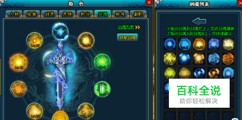 1.剑魂开启:打开【角色】-【剑魂】界面可打开剑魂主界面。30级时开放剑魂功能,人物角色达到30级时会开放前2个,当玩家角色再达到40级、50级、60和70级时,均分别再开放2个格子。