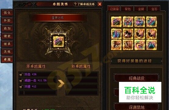 在9377奇迹来了勇者大陆上,勇士们拥有卓越装备,就相当于拥有了高战力,便可站立在高手行列。每一件卓越装备都拥有1条、2条、3条……等或多或少的卓越属性,但当获得卓越属性更好的高级装备时,旧装备上的卓越属性无法继承到新装备上,这也成为各位勇士们的心病。 如今卓越属性也可以洗炼啦!只要消耗卓越洗炼石就可以对装备进行卓越属性的洗炼,再也不用担心高级装备没有好的卓越属性啦!但要洗出好的卓越属性,消耗的卓越洗炼石数量也是很多的,那么奇迹来了卓越洗炼石怎么获取呢?奇迹来了卓越属性洗炼可对所有装备进行洗炼,不同的装备部位可洗炼出不同的卓越属性,主手、副手、项链、护符与头盔、衣服、护手、护腿、鞋子、腰带、戒指所洗出的属性是不同的。 点击右侧已装备或者背包中的装备,放入洗炼栏中,可查看到该装备的原卓越属性,消耗一个卓越洗炼石和100W金币即可洗出新的卓越属性,若对新的卓越属性不满意,可不替换继续洗炼。若原卓越属性中有中意的,可将其锁定,这样在洗炼时不会改变,但消耗的卓越洗炼石和金币数量就越多。 那么卓越洗炼石的获取途径有哪些呢方法有两种: 1、商城购买,50钻石可购买一个卓越洗炼石。这是获得卓越洗炼石最快捷的途径,但大量购买需要消耗的钻石也会比较多,因此这也是土豪玩家的玩法。 2、领地任务。奇迹来了领地任务共分10环,全部完成后可获得额外奖励,奖励中包含有1个卓越洗炼石。