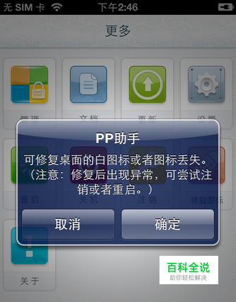 很多果粉在手机越狱后安装各种插件,导致桌面出现空白的图标,删除或是重启都没用。那该怎么办呢?PP助手iOS版有修复白图标的功能,可以快速的修复还原图标,还你整齐的桌面。