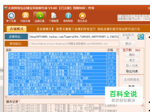 从这个截图中看到,还没有提示生成CSV文件,是正常的,因为840个宝贝的CSV文件很大,要保存到电脑上,需要1分钟到10分钟的时间,所以再等一下就可以了,即便是一直不弹出,也可以按停止,将已经生成的宝贝写到文件里。耐心等待下就好了。
