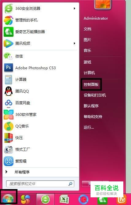 首先点击电脑“窗口”按钮,打开“控制面板”页面,如图所示