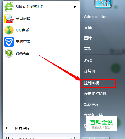 点击开始菜单,选择“控制面板”;