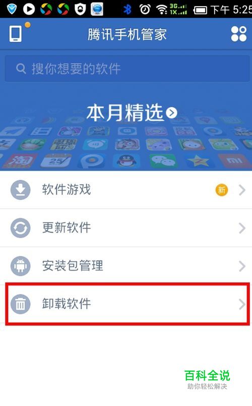 手机自身如果用普通方法,肯定是不能将这些预装软件给卸载掉的,那么我们就肯定得借助于第三方程序了,比如腾讯手机管家就有这个功能,你可以打开腾讯手机管家——软件管理功能,这里有一个卸载软件分类,这个分类下的【卸载软件】就是我们想要的功能了。