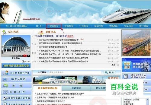 首先进入12306页面,点击(客运服务)。