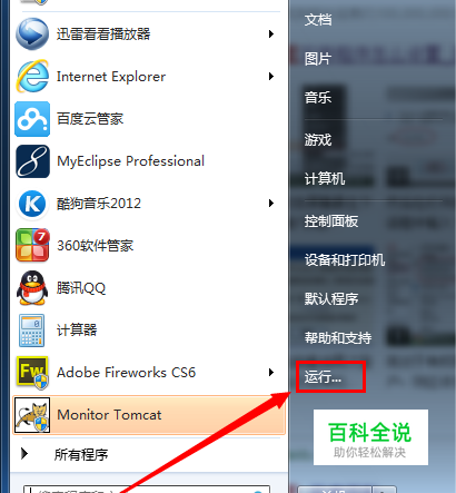 点击左下角的【开始】菜单,然后选择【运行】命令;或者直接用快捷键【Windows+R】