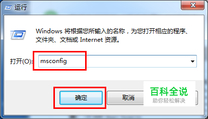 在打开的【运行】对话框里输入:msconfig;然后点击【确认】按钮