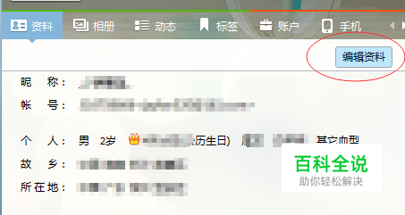 进入资料卡界面,点击如图小红圈中的【编辑资料】按钮