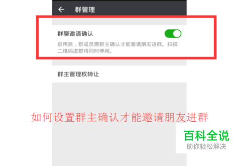 在群管理中,将“群聊邀请确认”打开,启用后,将不能通过扫描二维码进群,群成员邀请必须要群主同意才行哦。