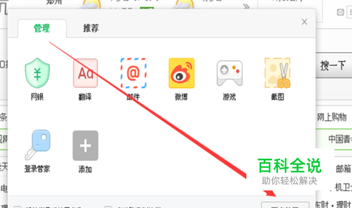 第一步:打开360安全浏览器首页,找到扩展界面。