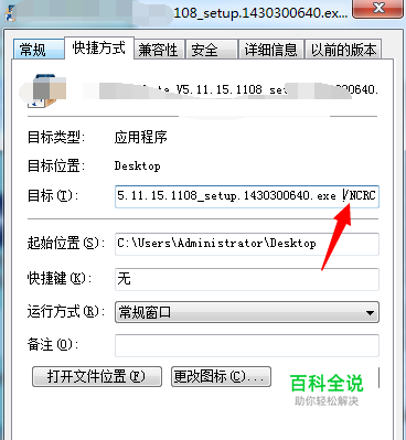 进入属性界面,点击上方【快捷方式】,在目标后方【 exe后方添加空隔/NCRC】 具体如下图 设置完成,打开应用程序进行安装即可