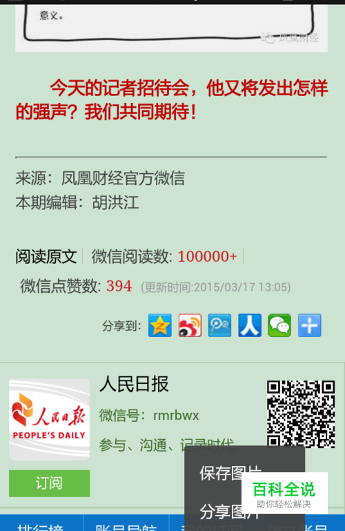 六、选择“关注”或者添加相应的好友。因涉及隐私,我们以添加“人民日报”公众号为例,按照以上步骤,即可成功添加。