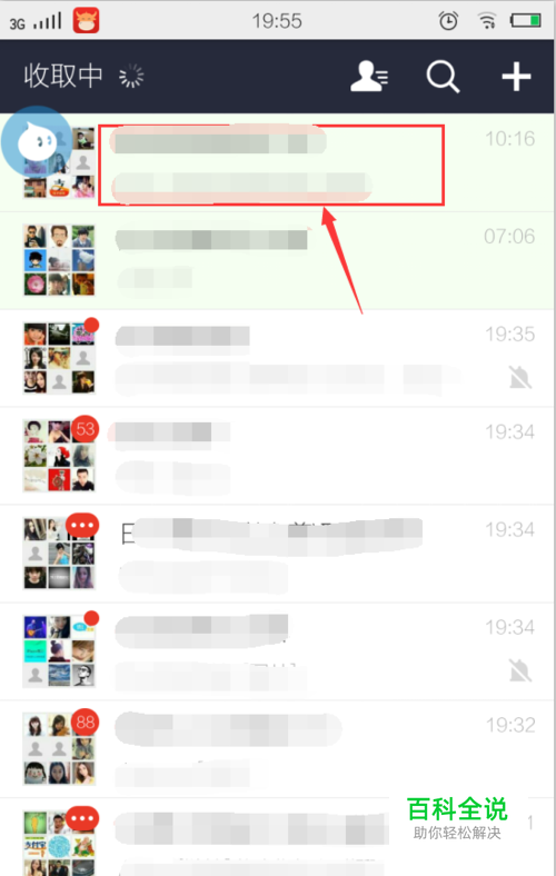 点开之后,会出现到一个聊天记录页面,类似QQ上的最近联系人,然后选择一个你要邀请朋友进入的群,如图中红框所示区域。