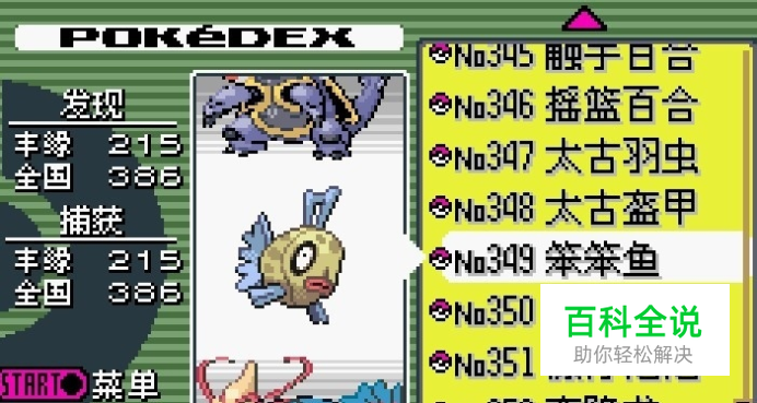 首先要知道笨笨鱼的id编号,从图鉴找到No349