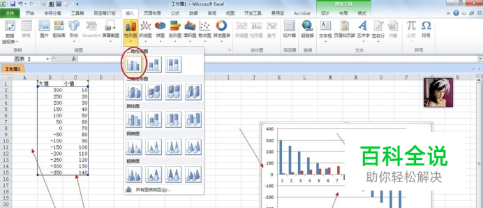 如图 以图中数据做柱形图,数据相差过大 做出的图差异明显不大,不科学,将差异明显的值以次坐标轴显示才对