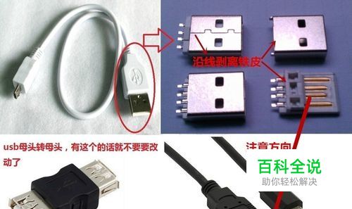 如果既没有双向母头,也想使用更加可靠,那就是需要将usb公头换成母头,如果有现成的带母头的线可以直接将换,颜色相同的线相接就行,如果没有,那就需要母头,接法如图