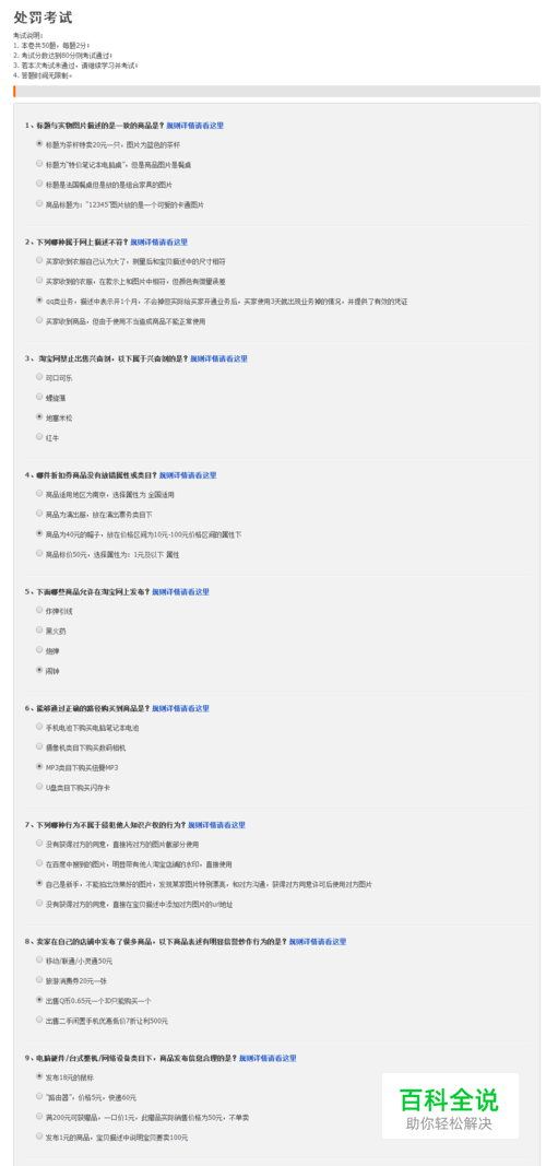 今天跟大家分享一下2017年6月份新版淘宝处罚考试答案,保证通过考试。