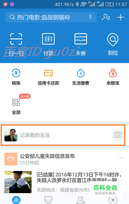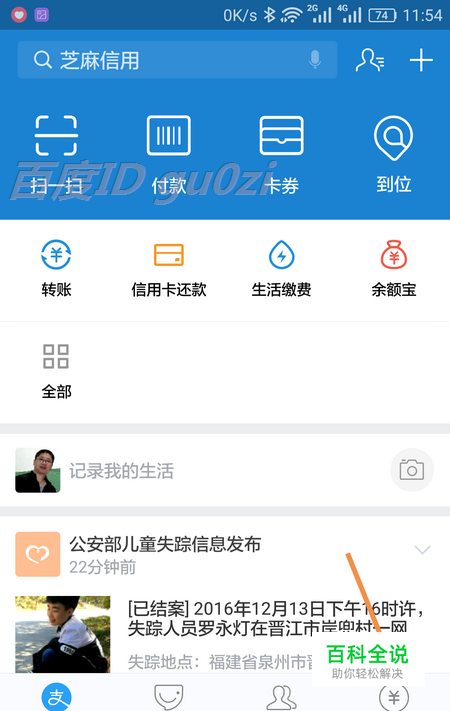 从手机上打开 支付宝,